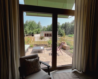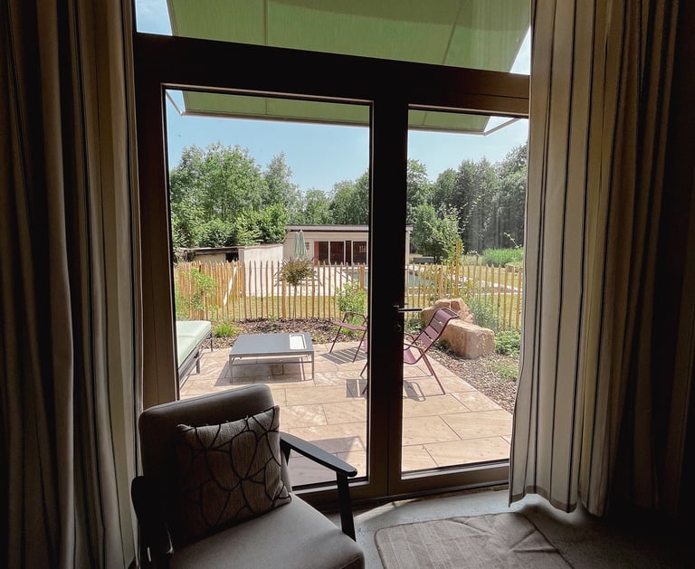Terrasse privée : Un espace extérieur avec canapé, fauteuils ainsi qu'une table basse.